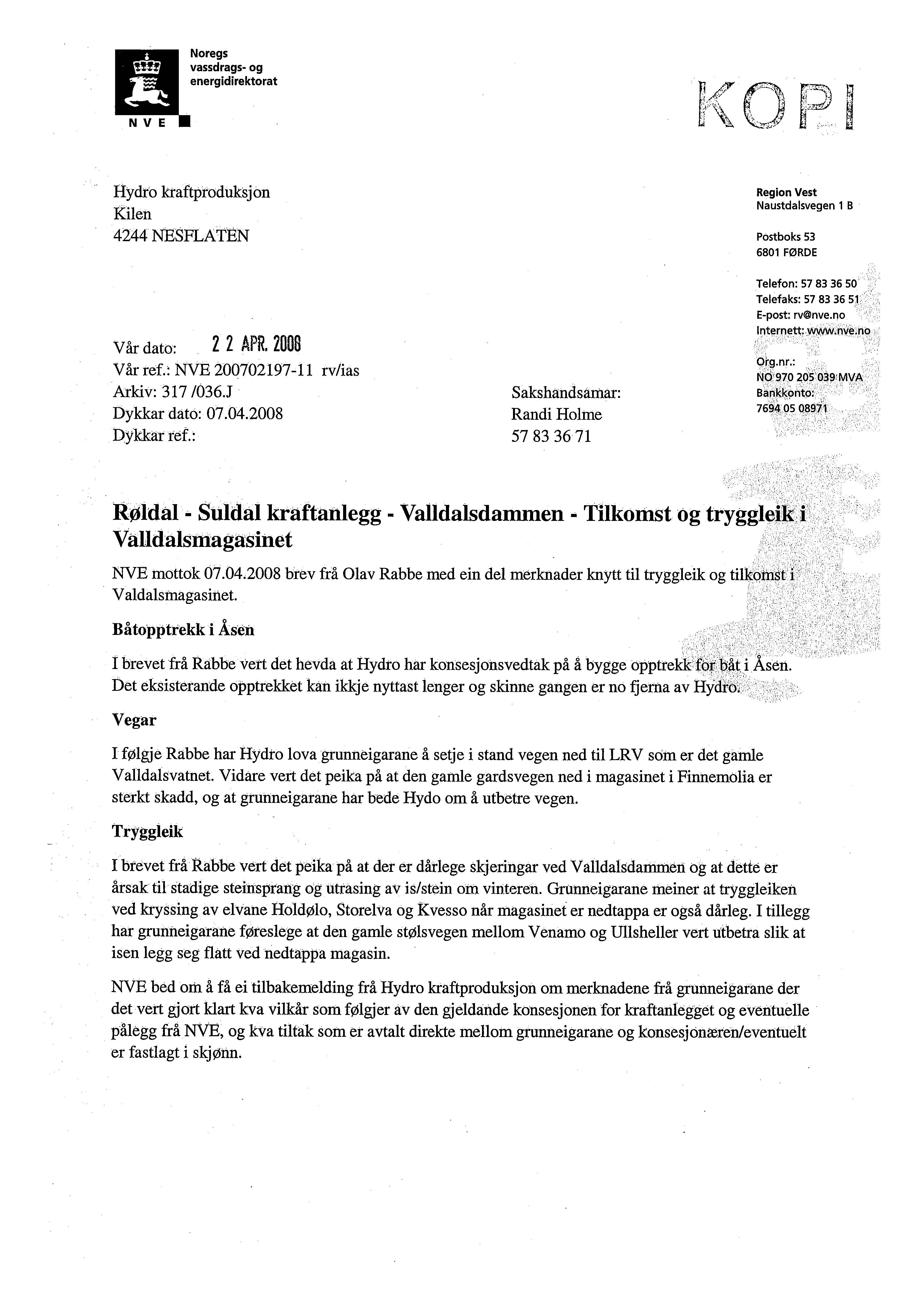 Svar NVE – Røldal – Suldal kraftanlegg – Valldalsdammen – Tilkomst og tryggleik i Valldalsmagasinet Last ned som PDF Related